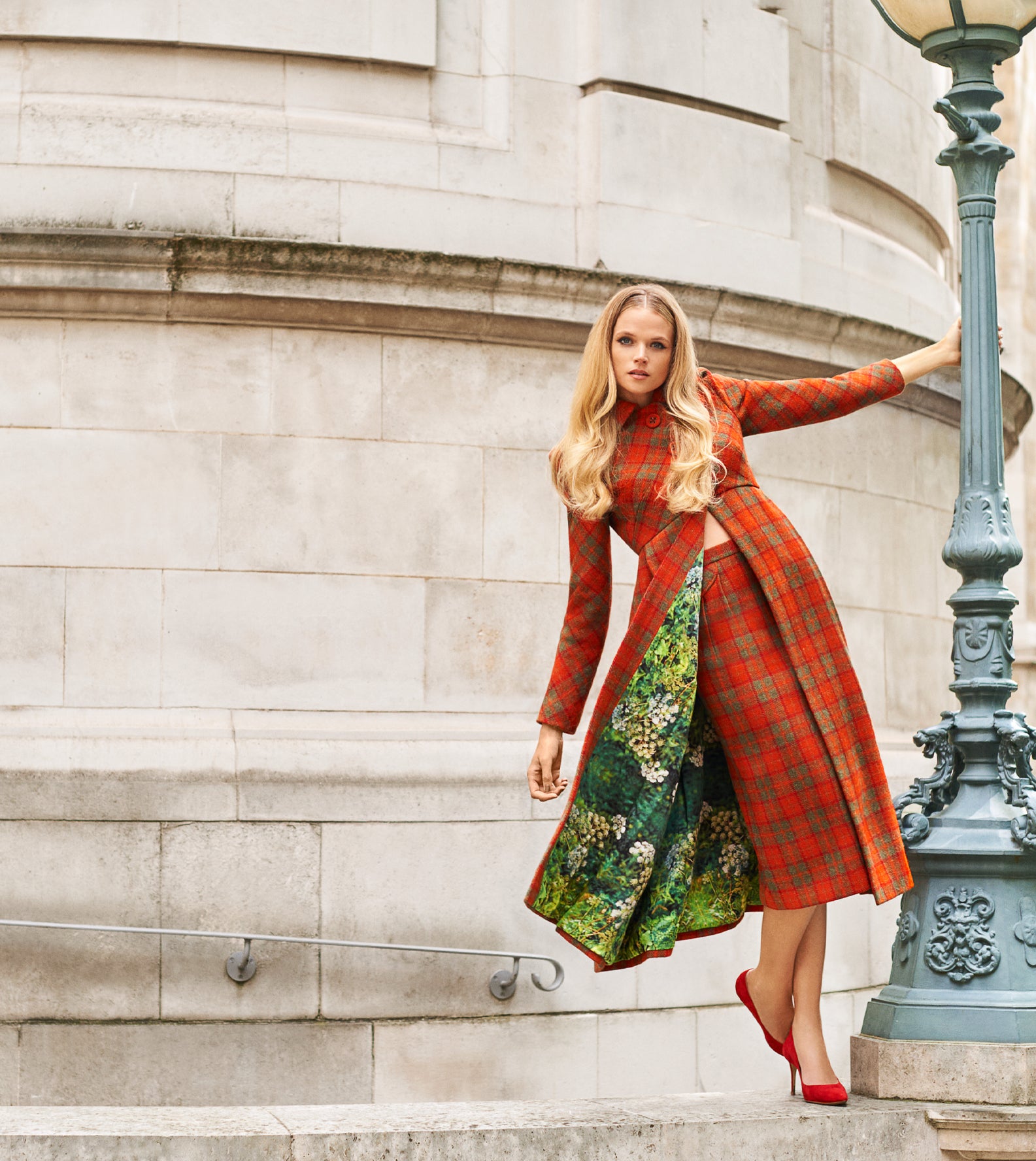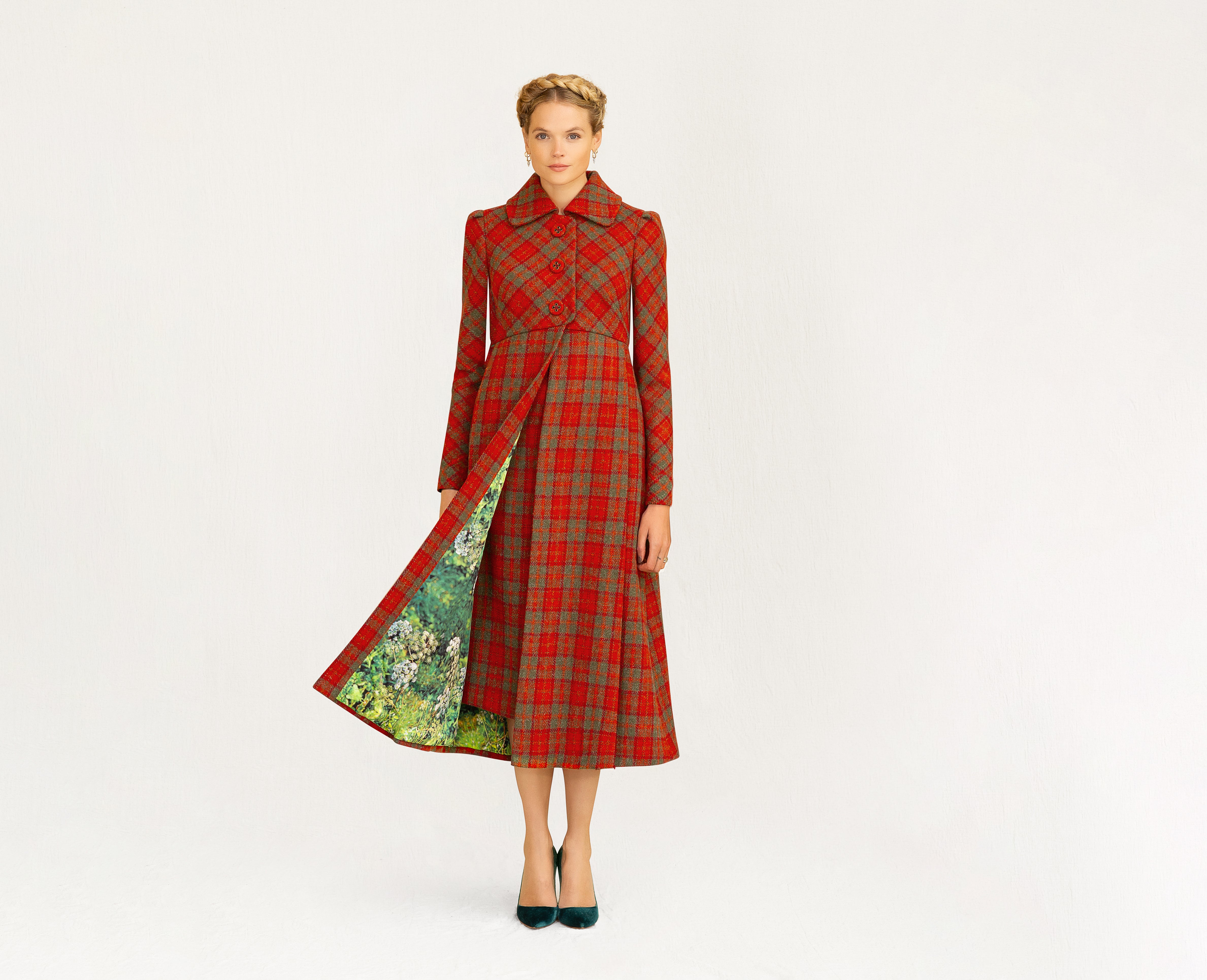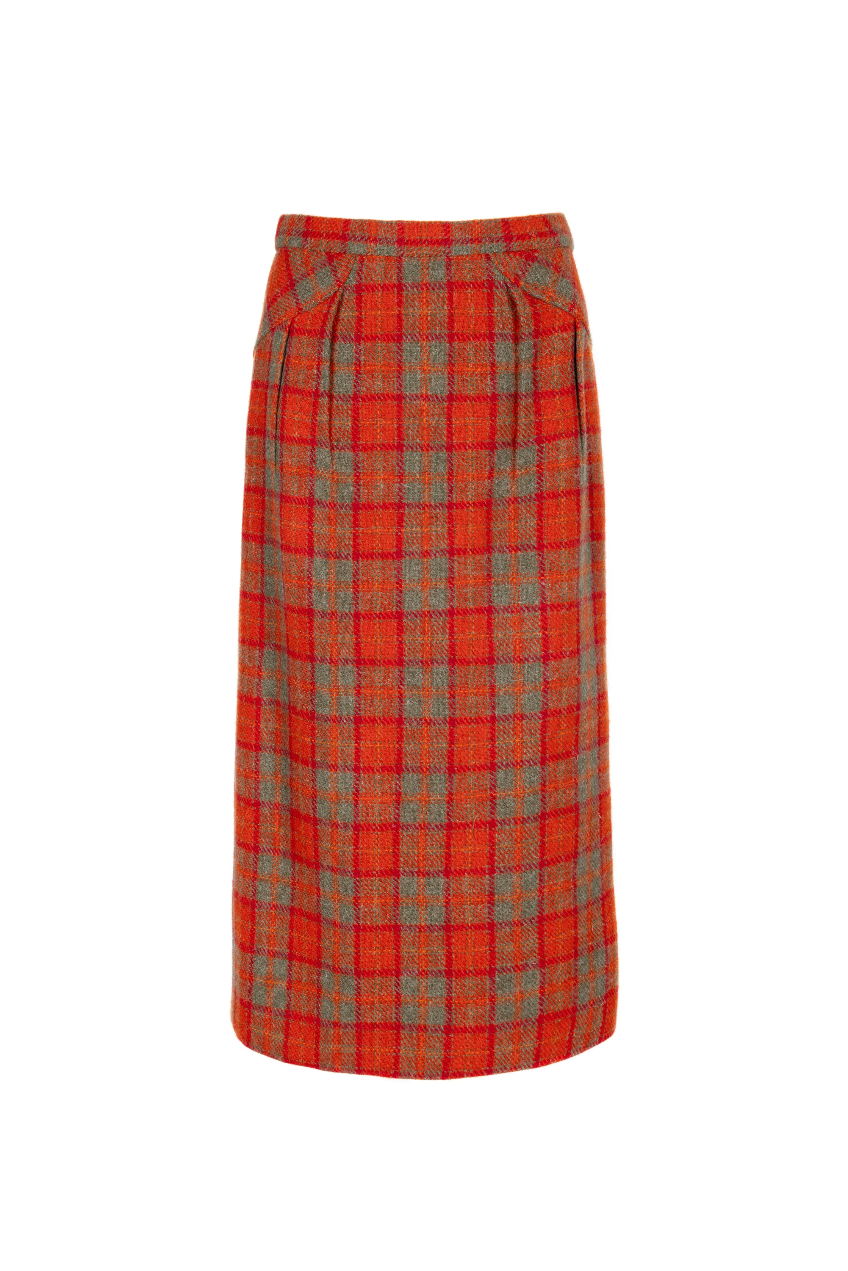 Cut from autumn-hued Harris Tweed the Ariel skirt features feminine front pleats, a fitted silhouette and a concealed zip on the centre-back. Pair it to perfection with the Lysander Coat - a playful-meets-functional outfit, designed to be worn in the city and countryside alike. Ariel is lined in silk satin featuring the Eponine Cow Parsley print.