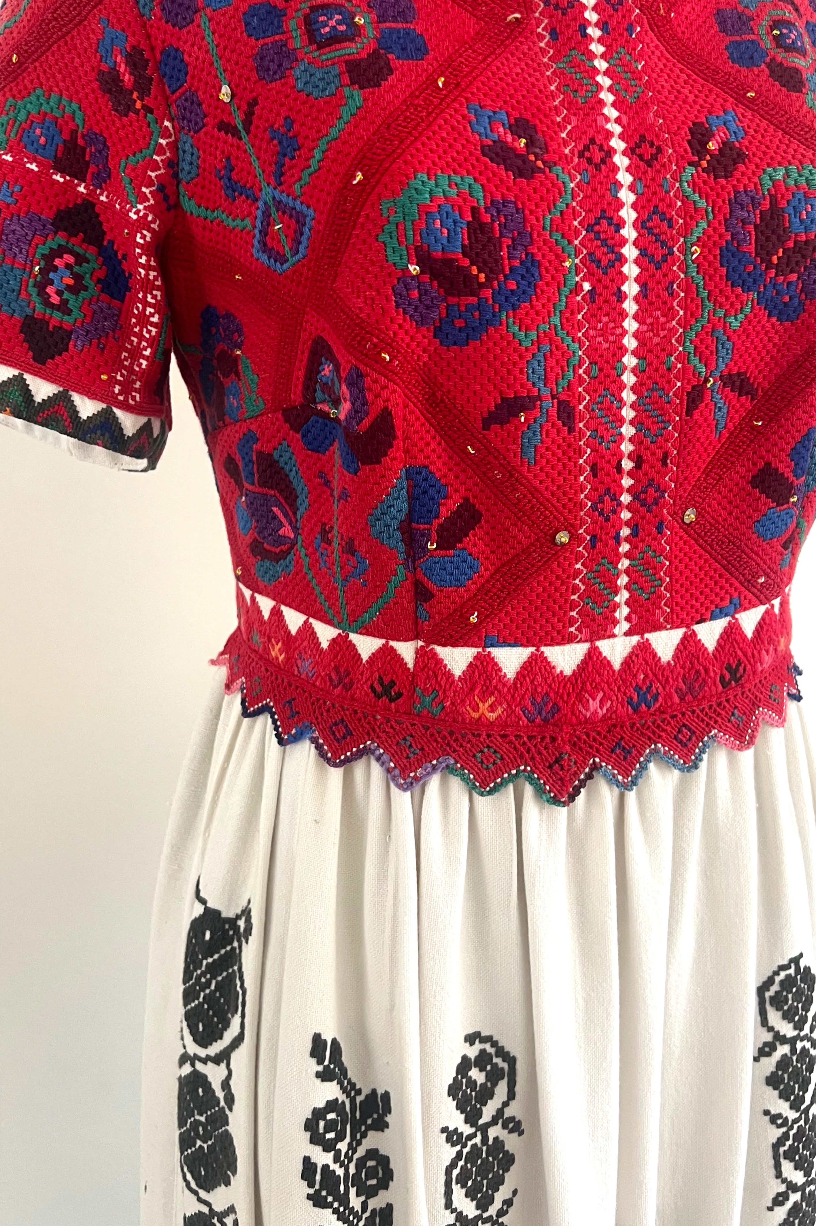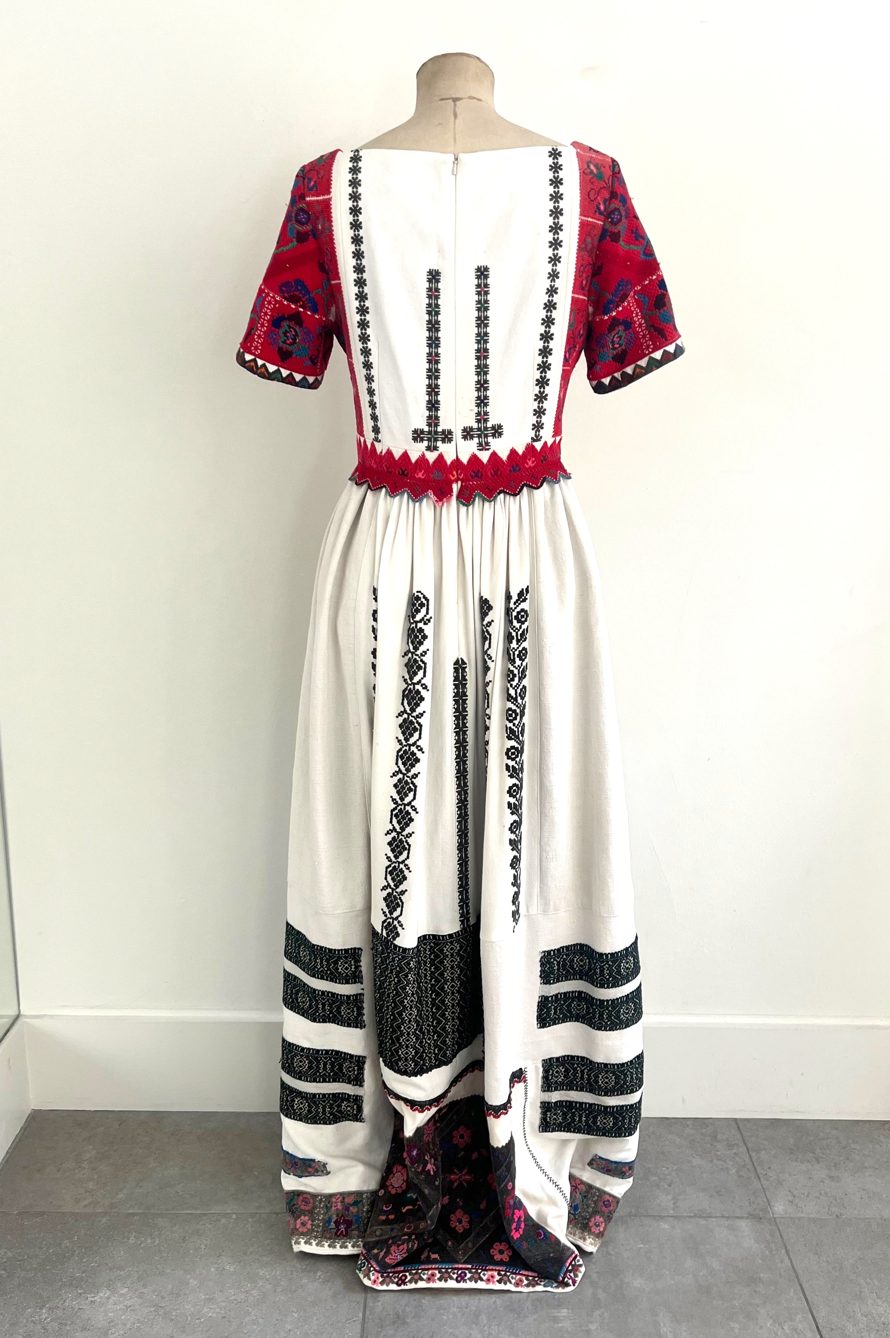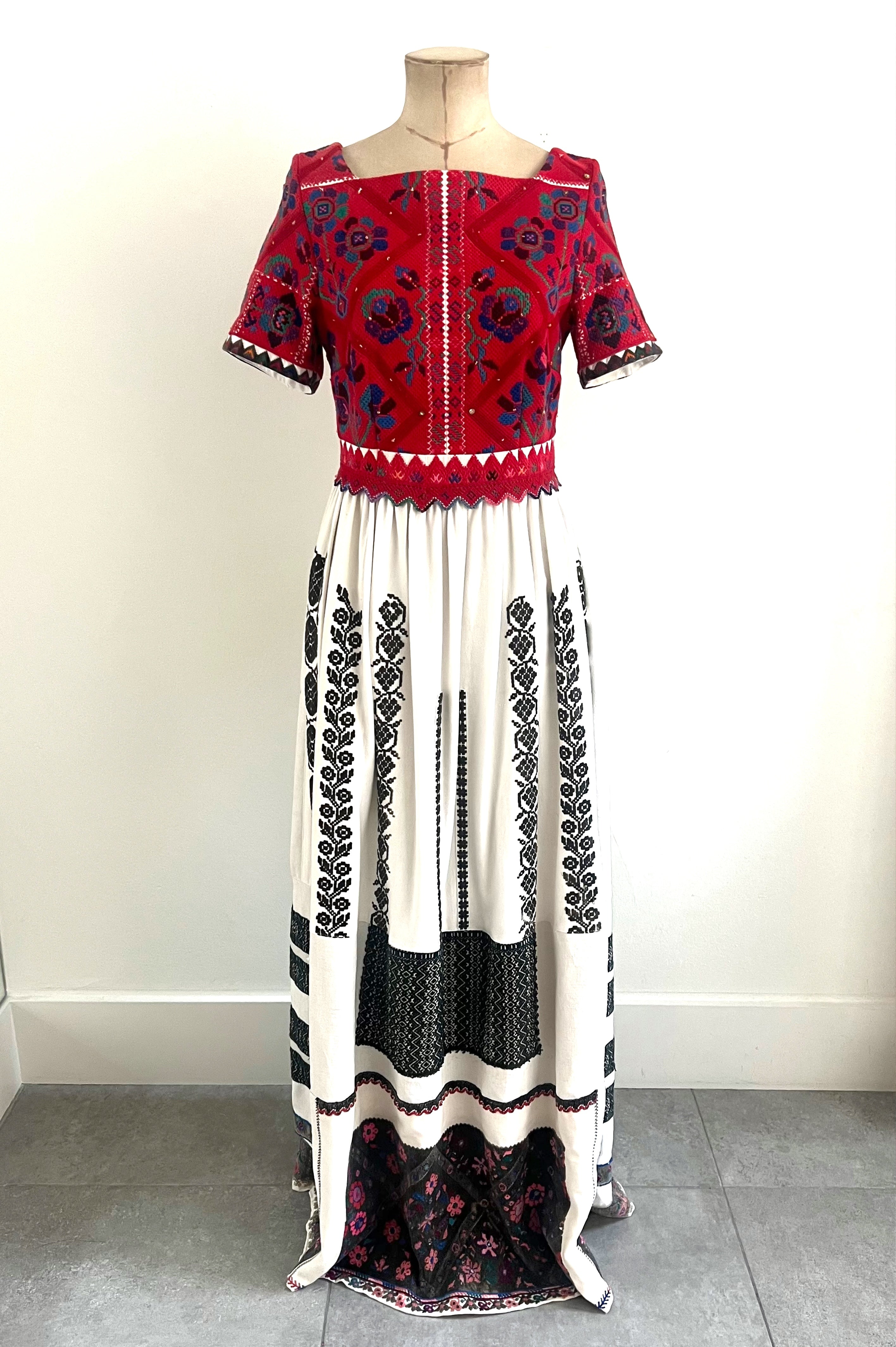 The Kiera dress is crafted using vintage Transylvanian pillowcases and table runners. One-of-a-kind and steeped in history, the Keira dress is the perfect solution to an alternative-meets-sustainable bridal aesthetic. This maxi length dress is lined in cotton.