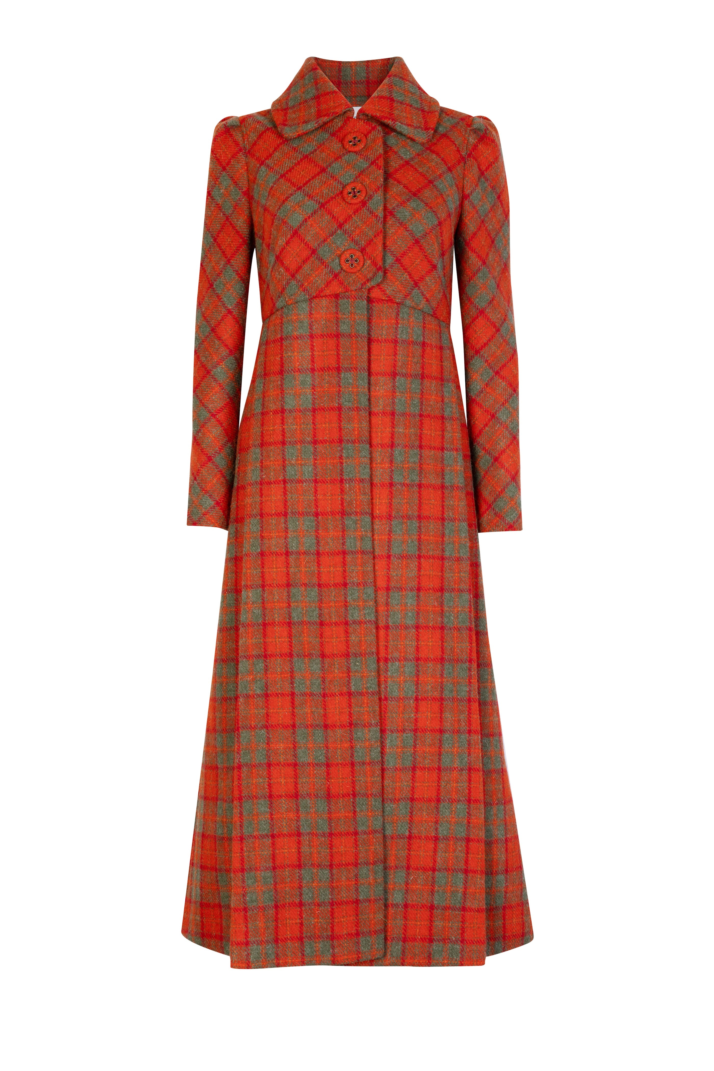 Cut from autumn-hued Harris Tweed, the midi Lysander coat features a fitted bodice, concealed side-seam pockets, a rounded collar and full-length sleeves. It is a flattering fit, with an inverted back pleat adding additional structure. Pair it to perfection with the Ariel skirt - a playful-meets-functional outfit, designed to be worn in the city and countryside alike. Lysander is lined in silk satin featuring the Eponine Cow Parsley print.